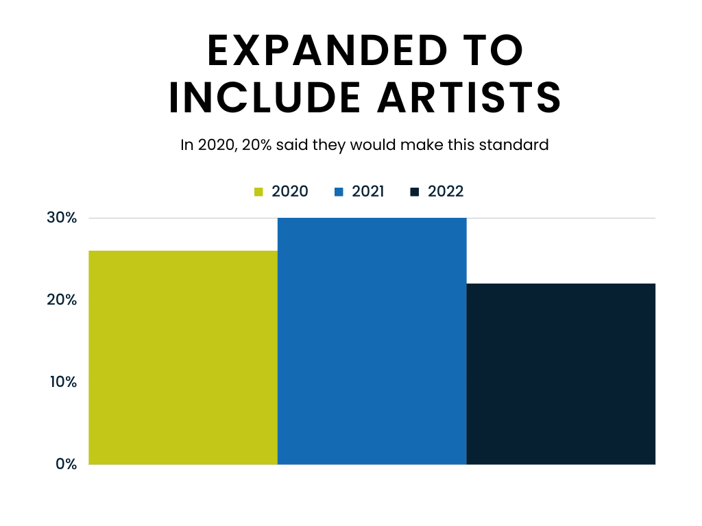 GIA has shared good news about our field. Nonetheless, we must remain not take any steps backward. In 2022 only 22% of GIA’s survey respondents said they’d expanded their giving to now include support for individual artists. While that’s in line with how many projected doing so in the future (20%), it’s lower than did so in 2020 (26%) and 2021 (30%). Individual artists are the lifeblood of our cultural communities. GIA calls on all of us to support individual artists through grants and through advocacy for such public supports as portable benefits. GIA recently went to Capitol Hill and met with Representative Suzan DelBene’ office, Senator Mark Warner’s office and the Labor Policy Director, Democrat Staff, of the House Education and Workforce Committee about portable benefits for contract workers. They assured us that there will be relevant legislation introduced this year, which we will share with you in real time so that we can join together in advocating for gig workers, including artists.