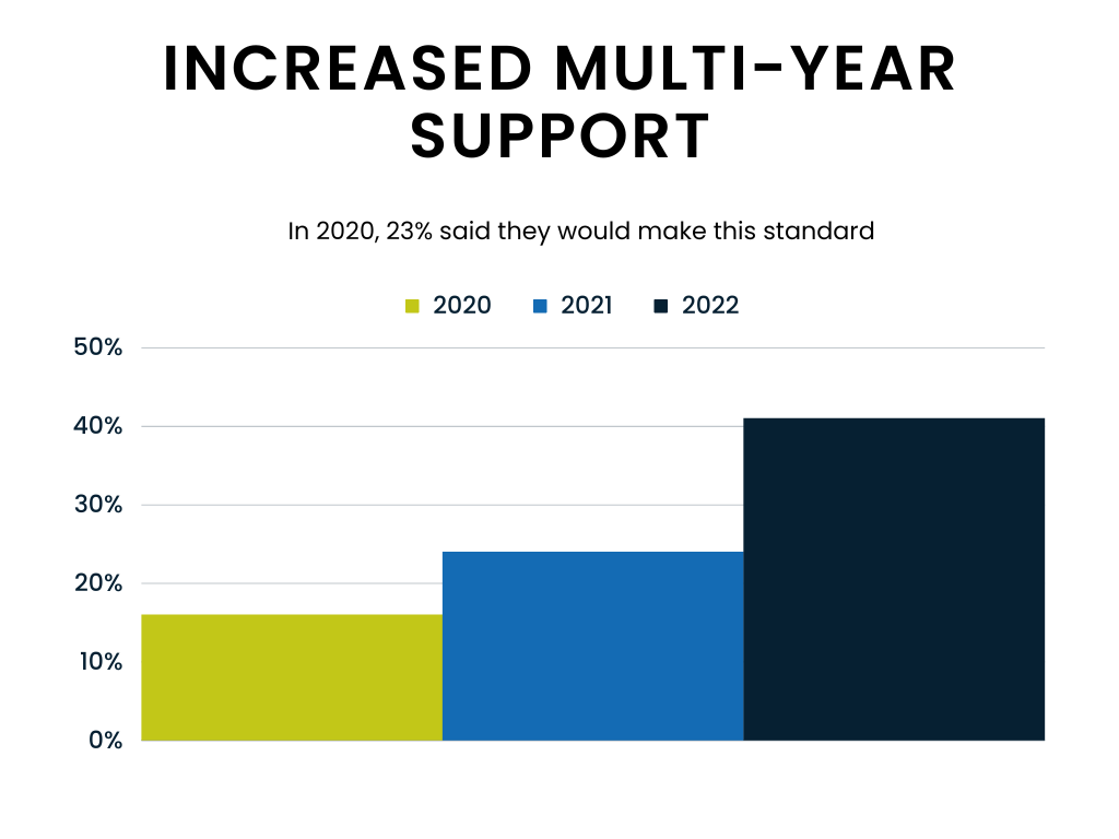 We end with good news and a call to action. 41% of GIA’s members increased multi-year support in 2022, after only 23% of our members said they’d do so in the future and with only 16% in 2020 and 24% in 2021 doing so.